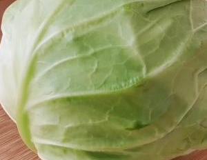 大家好,今天我们用这颗包菜来做好吃的。首先把包菜对半切开,放入大碗里,加入一勺盐,倒入清水,放入盐水里浸泡五分钟,去除农药残留。