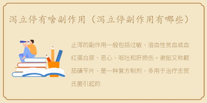止泻的副作用一般包括过敏、溶血性贫血或血红蛋白尿、恶心、呕吐和肝损伤。谢挺又称颠茄磺苄片,是一种复方制剂,多用于治疗志贺氏菌引起的慢性细菌性痢疾和肠炎。