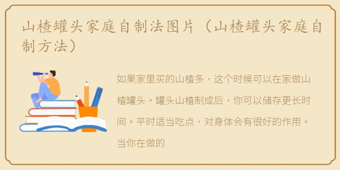 如果家里买的山楂多,这个时候可以在家做山楂罐头。罐头山楂制成后,你可以储存更长时间。