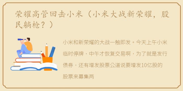 小米和新荣耀的大战一触即发。今天上午小米临时停牌,中午才恢复交易啊,为了就是发行债券,还有增发股票公道说要增发10亿股的股票来募集两百多亿港元的资金。