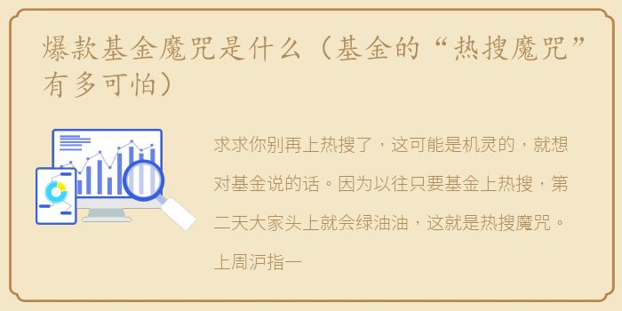 求求你别再上热搜了,这可能是机灵的,就想对基金说的话。因为以往只要基金上热搜,第二天大家头上就会绿油油,这就是热搜魔咒。