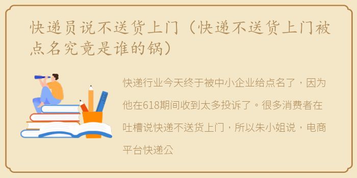 快递行业今天终于被中小企业给点名了,因为他在618期间收到太多投诉了。很多消费者在吐槽说快递不送货上门,所以朱小姐说,电商平台快递公司们不能只注重把我送出去的效率,不注重用户把货接回来的感受啊,不过呢说归说骂归骂,没有人会真听话。