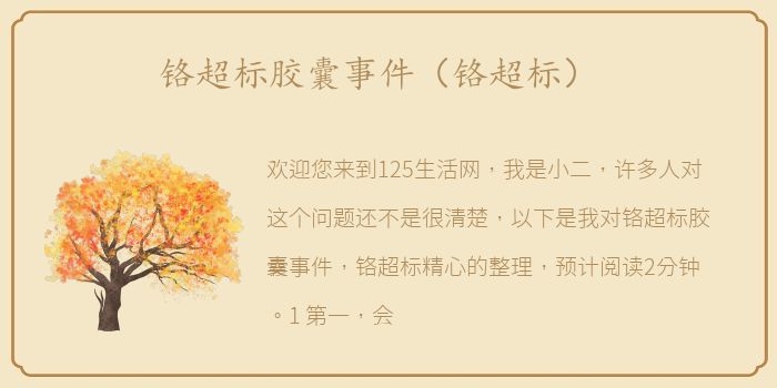 欢迎您来到125生活网,我是小二,许多人对这个问题还不是很清楚,以下是我对铬超标胶囊事件,铬超标精心的整理,预计阅读2分钟。