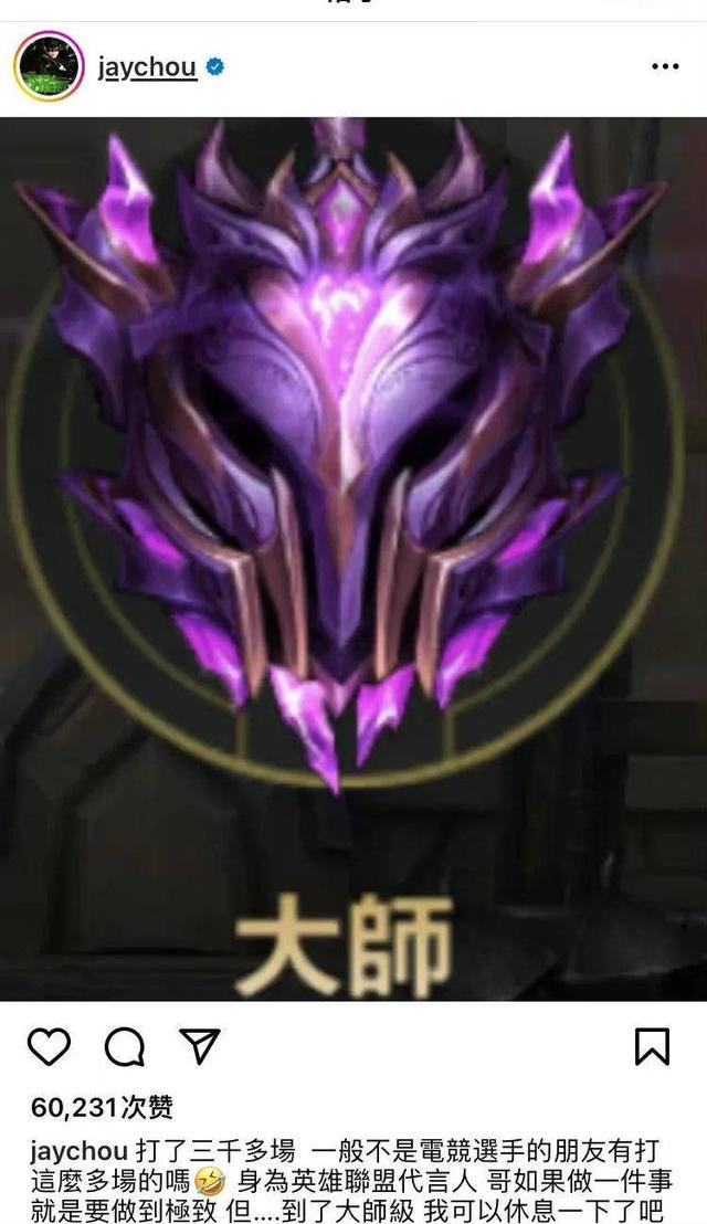 近日,周杰伦在社交媒体上发声,称自己的《英雄联盟》已经到了高手的位置,已经打了3600多场。