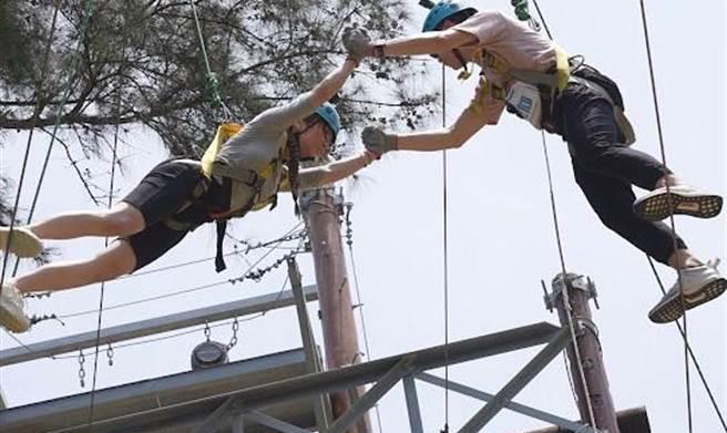 蛯原姫奈摇牛奶挑战空中独木桥。