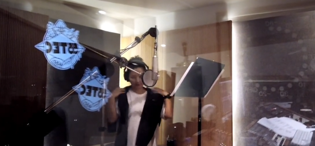 那一天,何洁穿着宽松的白色t恤搭配牛仔裤,脖子上围着一条黑色的披肩,头发扎成高高的马尾辫,穿着随意。她戴着耳机在录音室录新歌,工作人员在外面给她指导,比如哪些歌词应该压在她的喉咙上又该觉得哪个撕心裂肺。