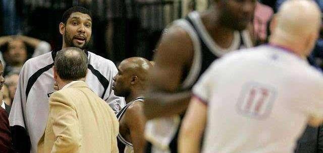 邓肯笑不是因为和队友聊了什么开心的事,而是想用这种方式抵制黑哨。克劳福德想宣誓自己的权威,不断找机会打压邓肯。邓肯被判进攻犯规喋喋不休后,一直站在邓肯身边。邓肯以为比赛结束后嘲讽黑哨就没事了,于是连连大笑,刚好被克劳福德接住。这一刻,就像火星撞地球一样。克劳福德慷慨地送给邓肯两次技术犯规的礼物。