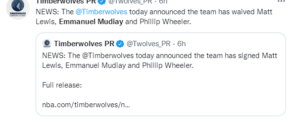 北京时间10月16日,森林狼官方宣布裁掉马特-刘易斯、伊曼纽尔-穆迪埃和菲利普-惠勒。2015年以第七顺位进入NBA的穆迪埃,再次沦落到无球可打的地步。