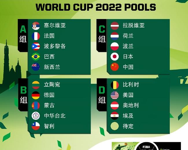 三人篮球世界杯将于2022年6月21日至26日在比利时安特卫普举行。男女队将分为四组,每组五个队。这支队伍的规模是2019年以来最大的。本次比赛各组排名顺序由截至2021年11月1日的国际篮联全国排名决定。